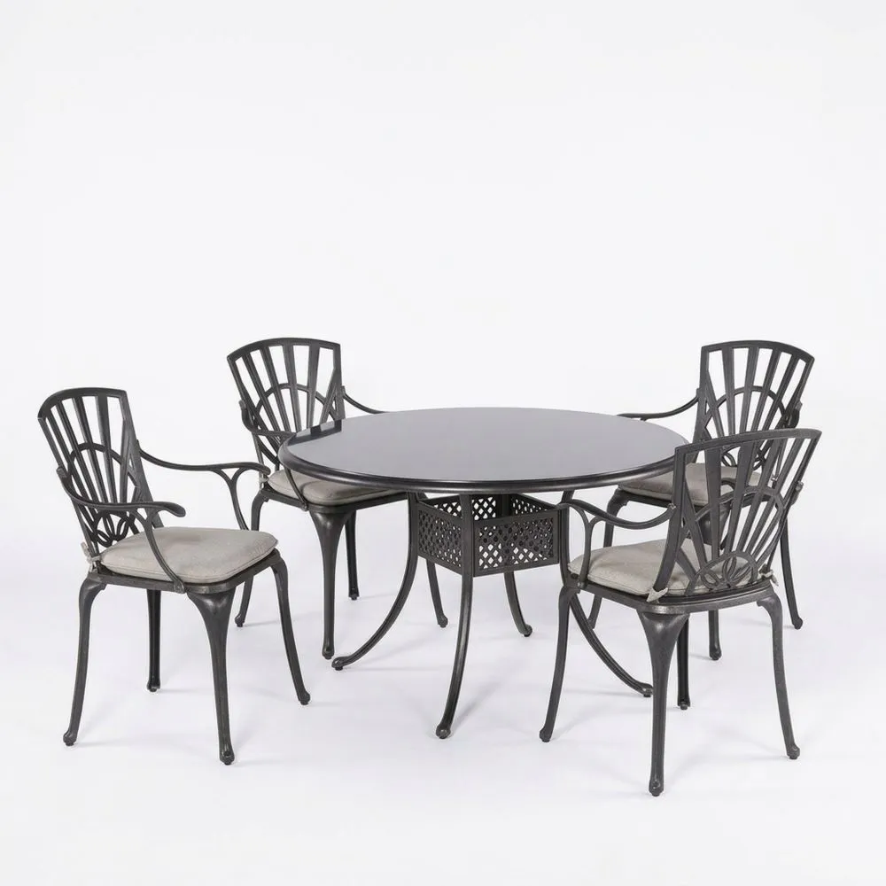 Aluminium Gartenset Rundtisch mit 4 Stühlen Dunkelgrau
