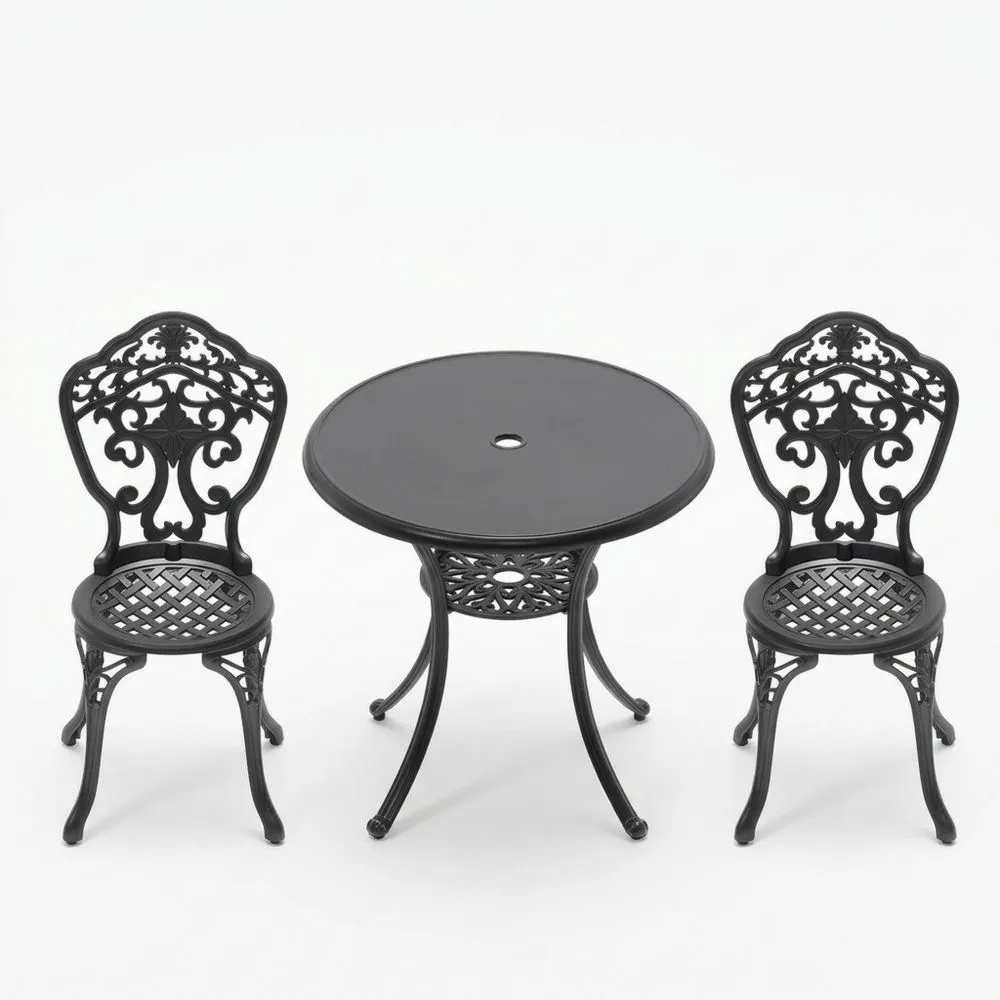 Bistro-Set Aluminium Schwarz Rund