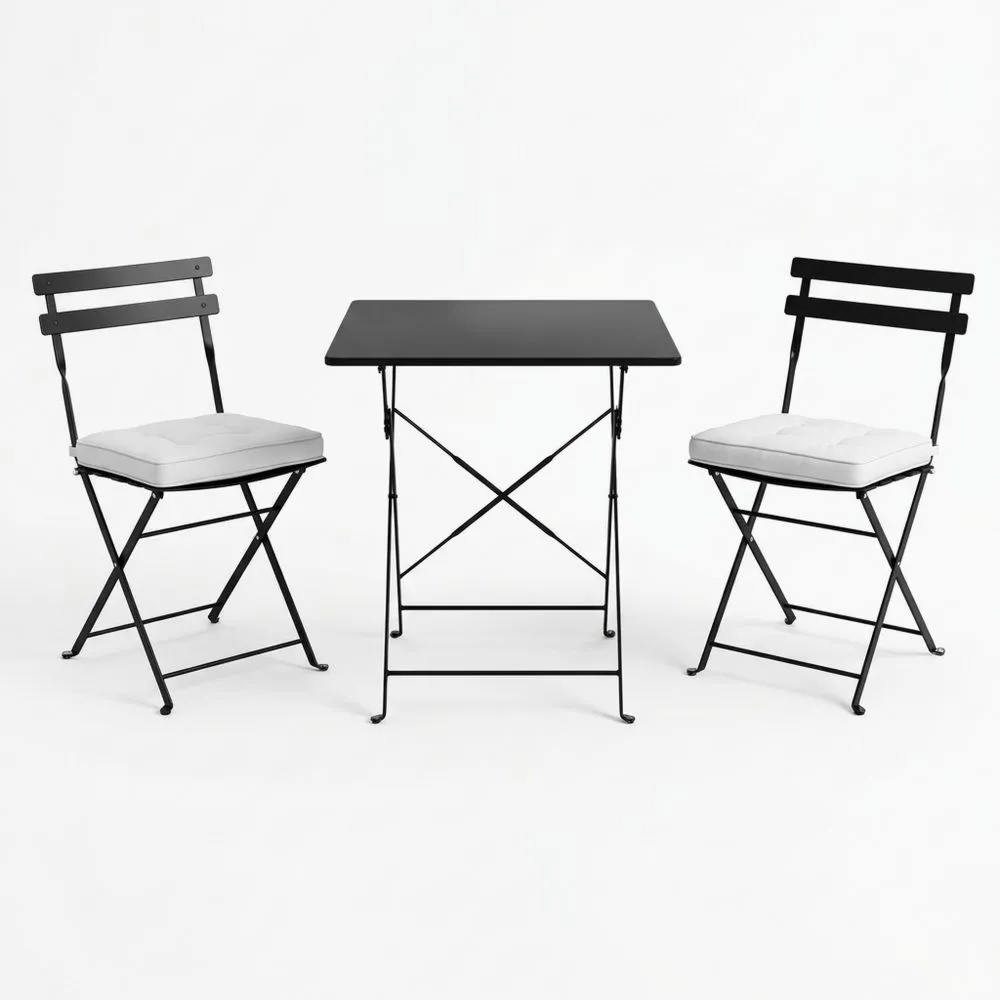 Gartenmöbelset aus Stahl, bestehend aus Tisch und zwei Stühlen in Schwarz