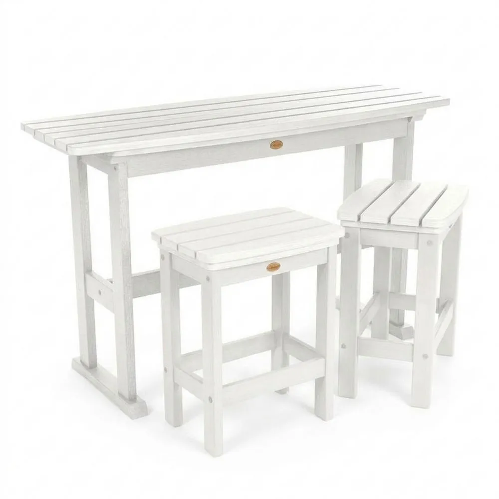 Gartenmöbelset aus weißer Kiefer, bestehend aus Tisch und 2 Hockern
