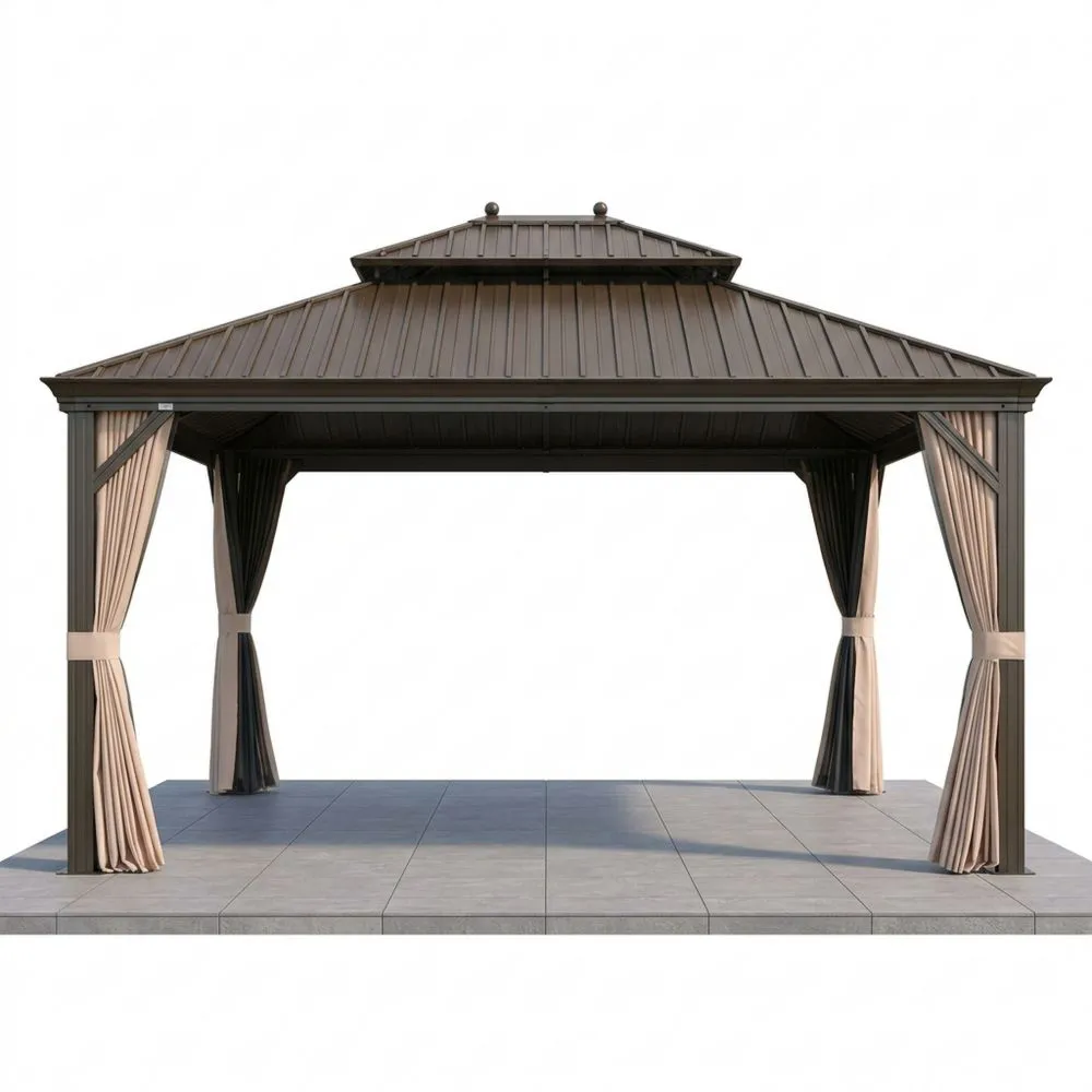 Gartenpavillon aus Aluminium und Stahl mit Polyester-Vorhängen, Braun