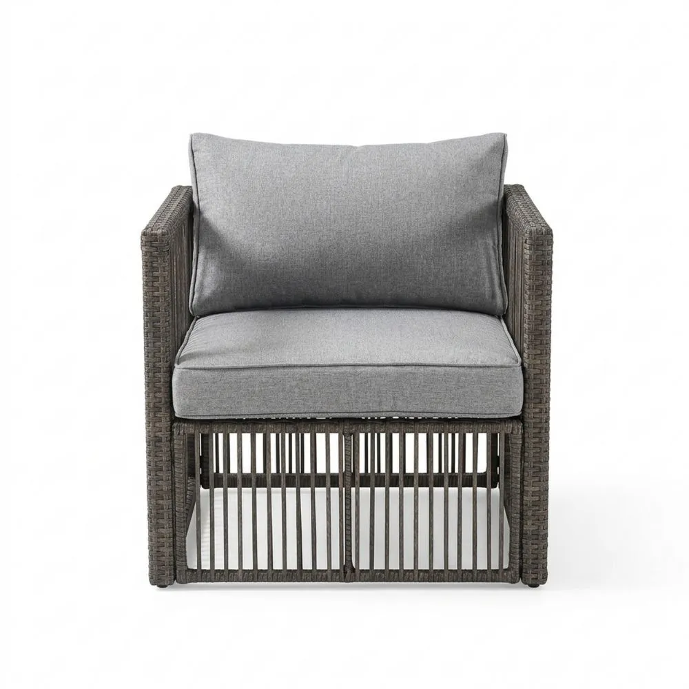 Gartenstuhl aus Aluminium und Polyrattan mit grauen Kissen
