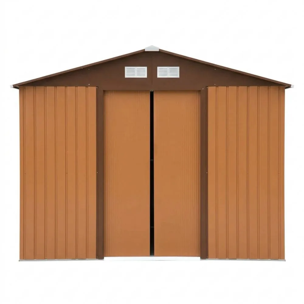 Geräteschuppen aus braunem, verzinktem Stahl mit Schiebetür und Lüftungsöffnung
