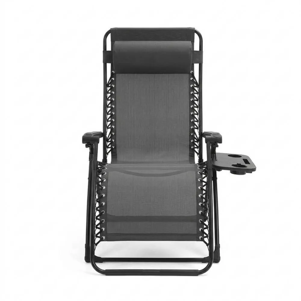 Klappbarer Liegestuhl Stahlrahmen Textilene Grau mit Tisch und Kissen 180cm