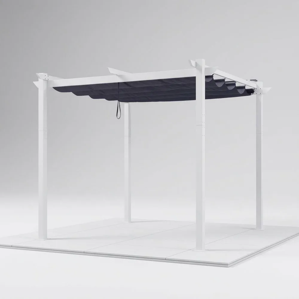 Pergola Aluminium Weiß 300x300 cm mit verstellbarem Polyester-Sonnenschutz Dunkelgrau