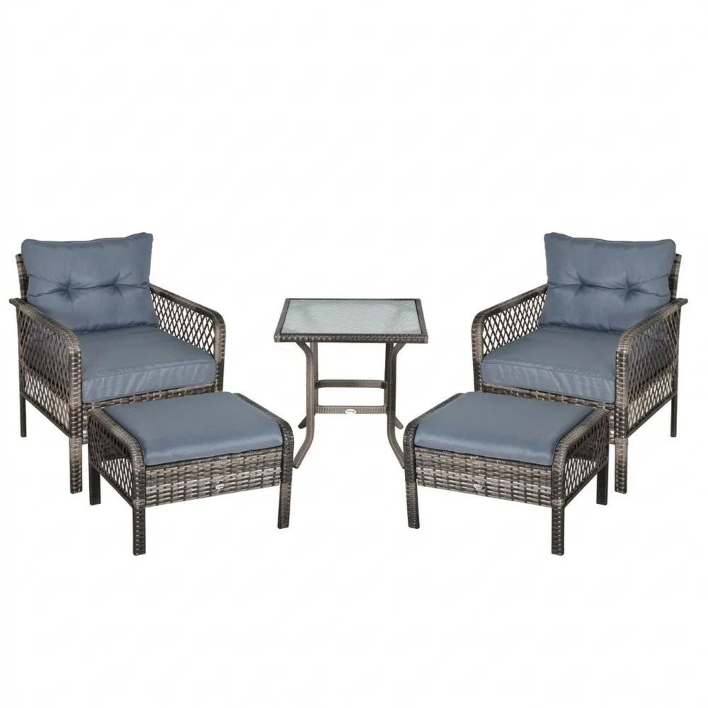 Polyrattan Gartenmöbel-Set 5-teilig mit Stahl und Glas Blau