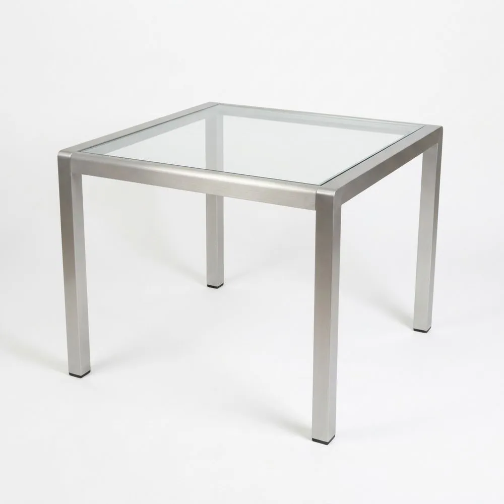 Quadratischer Beistelltisch aus Edelstahl und Glas 50 cm